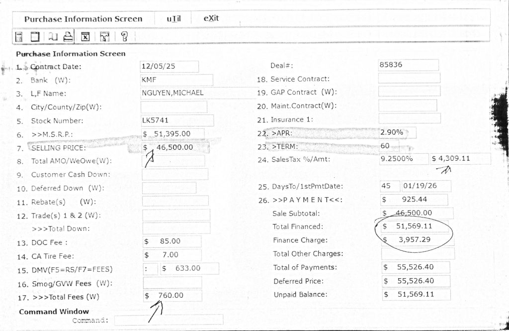 Two hours later, they replied, “Thank you for the offer Michael. However, we are already all in at $46,895 plus tax/fees (no add-ons or markups) at 2.90% for 60 months. Offer is valid for 12/5/25.”
