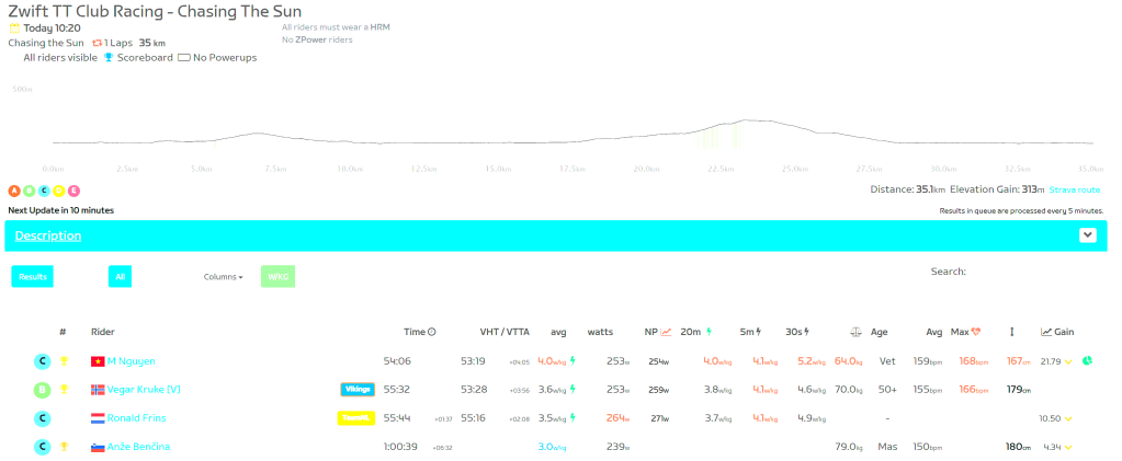- ZwiftPower ranking now at 166.3. Achieved best all time ZwiftPower race score: 143.50.