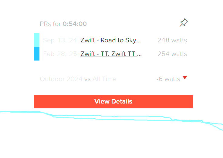- Personal 5 Minute Record of 5.1w/kg to close the race uphill on a 2024 Aeroad + DT Swiss disc combo. 92.6% percentile score in w/kg for my 40-49 age group of 17K+ athletes on Intervals.icu.